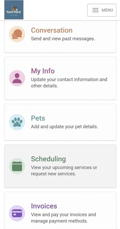 Our pet sitting software is designed to provide convenience and flexibility for our customers. One of its key features is the ability to update personal contact information and pet information at any time. This allows pet owners to easily keep their information up-to-date and ensure that their pet sitter has the most current information.